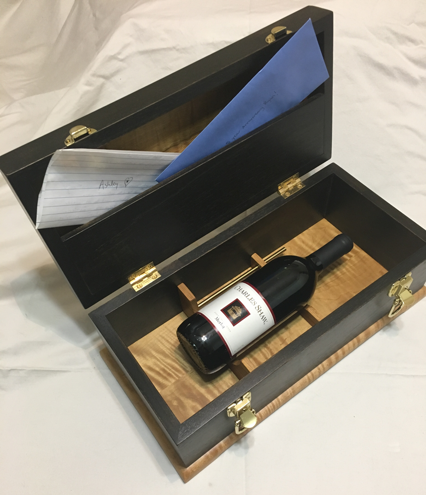 Gritton Wood Studio first started making beautiful custom boxes when Scott’s daughter married and told him about the practice of couples giving one another a wedding box as a gift. Included in the wedding box is the couple’s favorite bottle of wine and letters they write to one another. On their first anniversary they share the wine and read their letters. Some couples put a second bottle of wine and another pair of letters in for their next anniversary. Others convert the box to another use, with some ordering a couple of trays to insert into the box to hold jewelry, watches or other keepsakes.